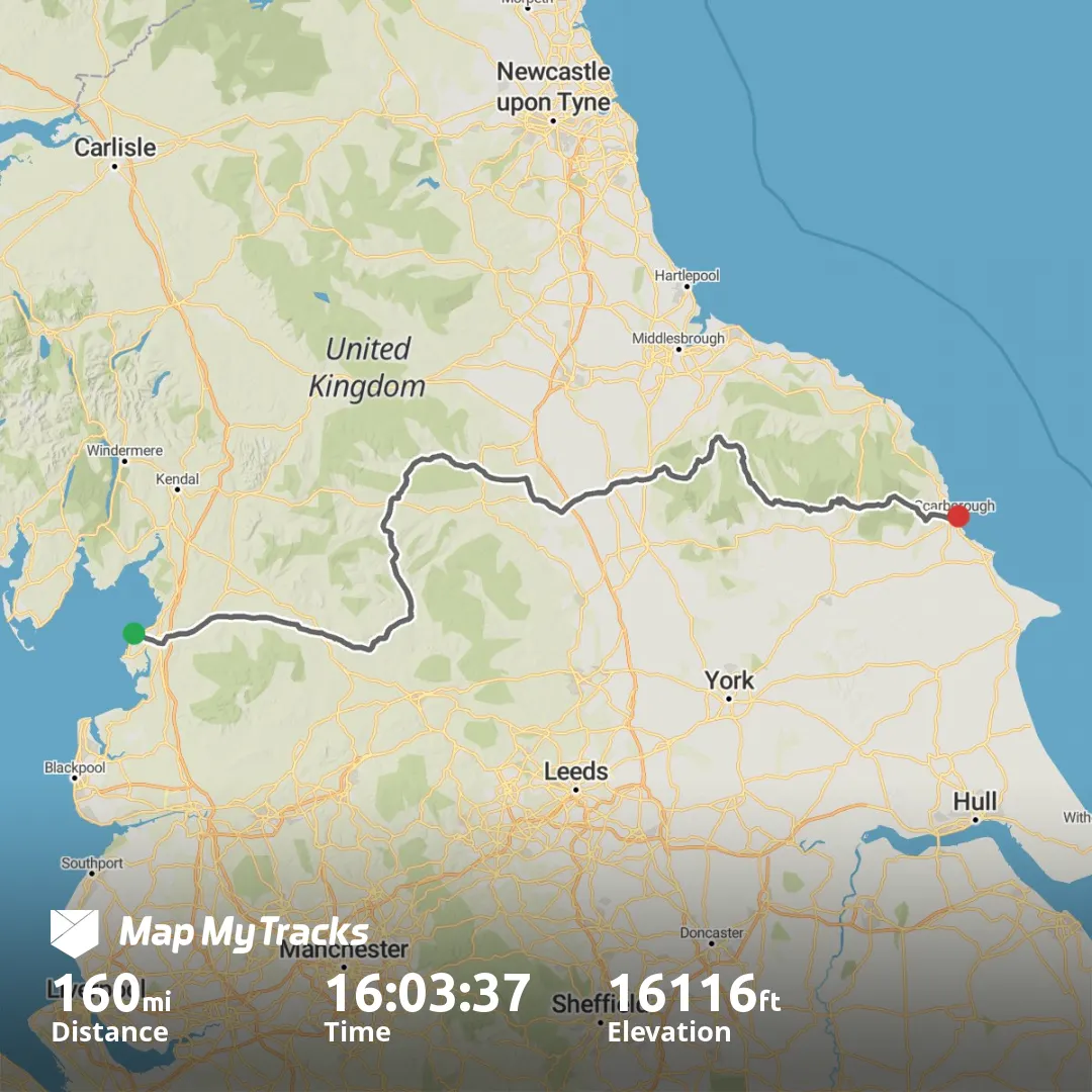 Trans England is an unsupported bike ride from the west of England starting in Morecombe over to the east of England in Scarborough. They describe this as a reliability ride, not a race, but with the clock always ticking and proof of passage required by time stamped photos it seems like a race.