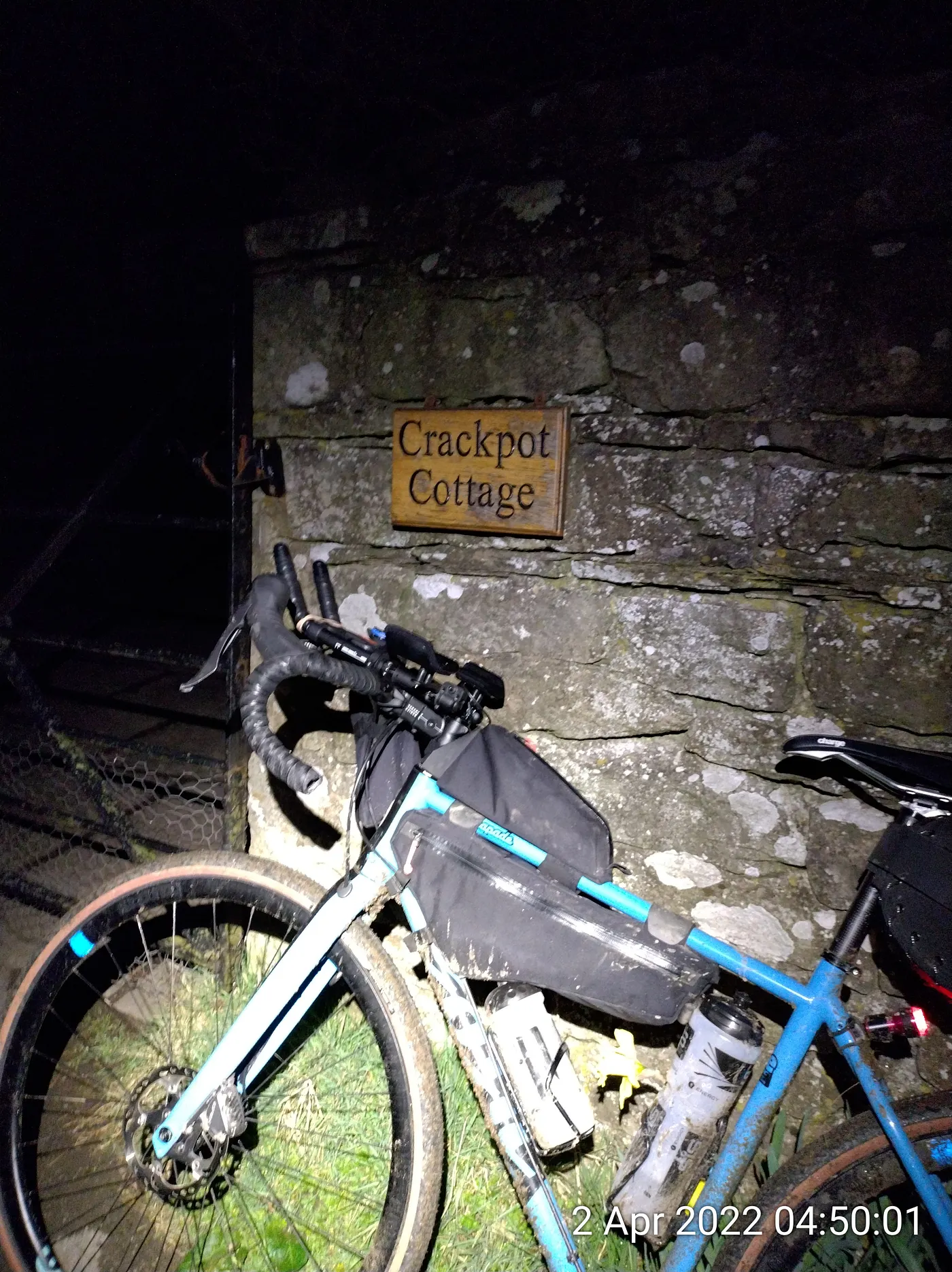 We were forewarned that checkpoint 1 was a ‘short hike’ from the road and indeed it was short hike but that failed to disclose the clambering down then back up that was required in cycling shoes not made for slippy rock! Great fun for 01:00 in the morning. With CP1 ticked off and tweet posted it was time to hunt down CP2.