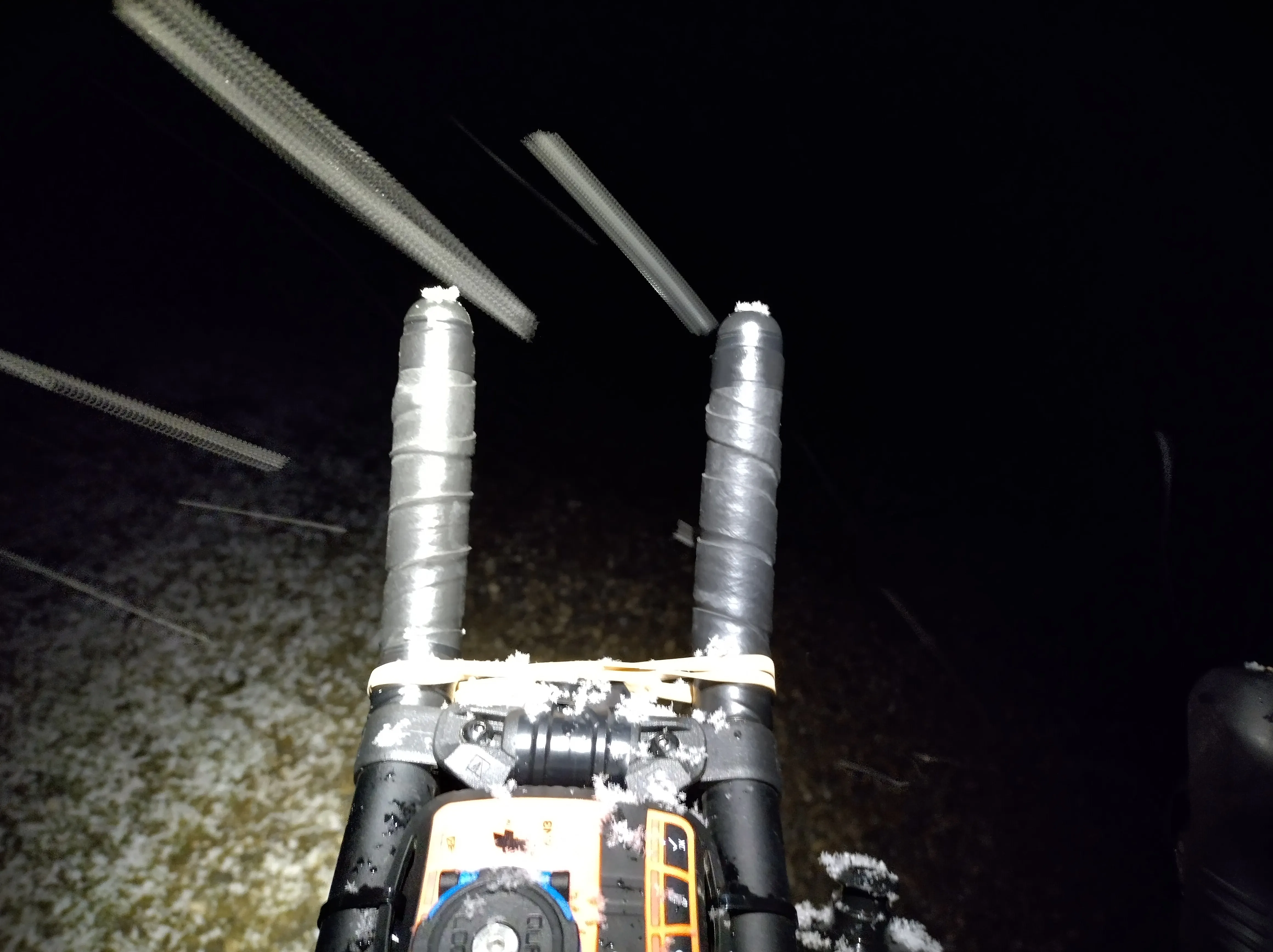 With my route of choice checkpoint 2 was around 30 miles down the road. It was after CP1 that a few gravel options start to present themselves to take a more direct route. I’d pre-planned my route so didn’t want to stray away from what was already on my head unit and given the time of night I had no notion of the terrain around me. My little world was the beam of light in front of me which soon started to get filled up with snow fall.